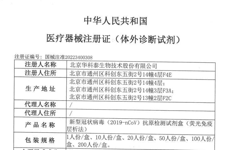 新冠抗原产品荣获国家药监局首批检测试剂注册证